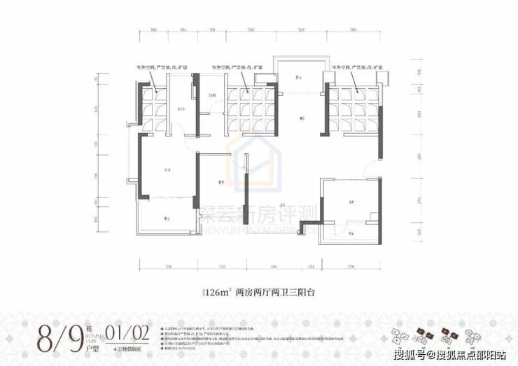 ①高阔奢享:建面约86-176㎡墅境宽宅,改善型三房四房,全南向户型天然舒适;两梯三户低梯户比,多阳台露台设计,悦享阔绰居住空间;方正户型结构搭载更多半开放设计,高阔空间实用率与灵活性大幅提升。