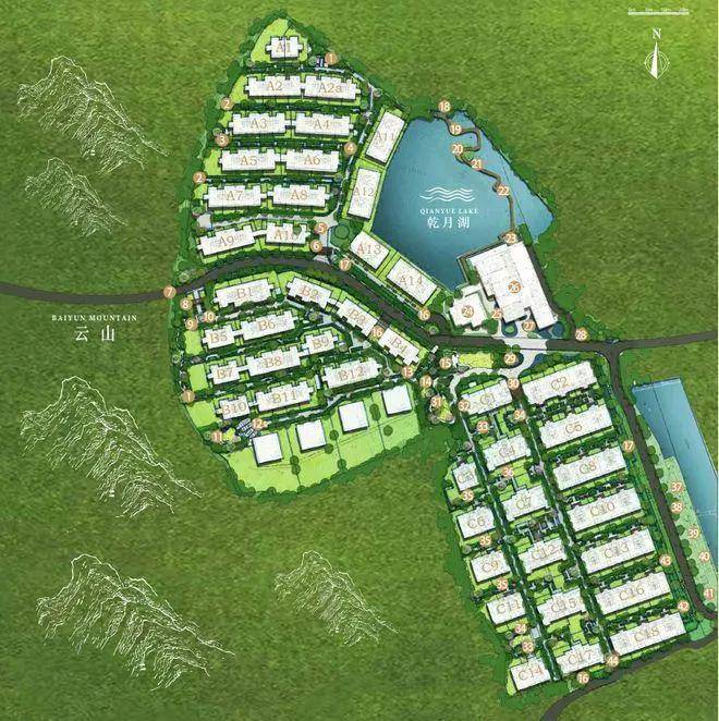 【基础信息】项目地址:占地面积:约9.4万㎡建筑面积:约7.3万㎡容积率/绿化率:约0.97/30.7%产品户型:210-215㎡平墅,206-241㎡叠墅,266-306㎡联排别墅整体规划:产品业态以联排别墅为主,共规划269户。分为ABC三个住宅组团分期开发,其中A区为41套联排别墅和15套临湖别墅,B区为37套联排别墅,C区以叠墅为主少量平墅产品,共规划269户。
