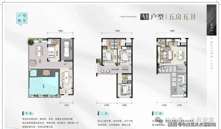 别墅小院:约80㎡海边小院,5房5卫套房设计,有天有地有院子和看海露台!