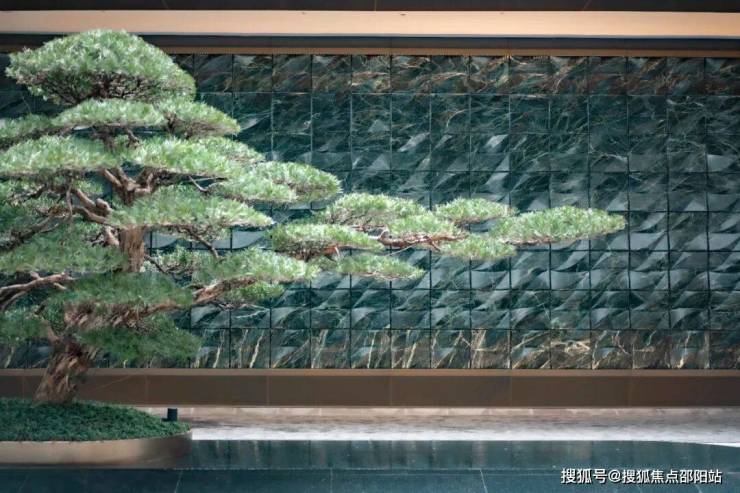 在主入口,首先映入眼帘的是高约3米的罗汉松,身姿挺拔,与两株冬青树一起,带来第一重归家仪式。