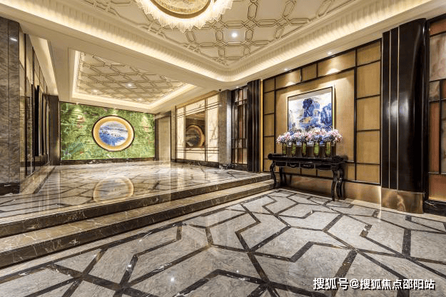 以过厅地面盛开花朵的镶嵌为例,施工工匠需有十年以上的水刀切割工艺经验,才得以让花朵与地板完美融合,肉眼几乎看不到缝隙。