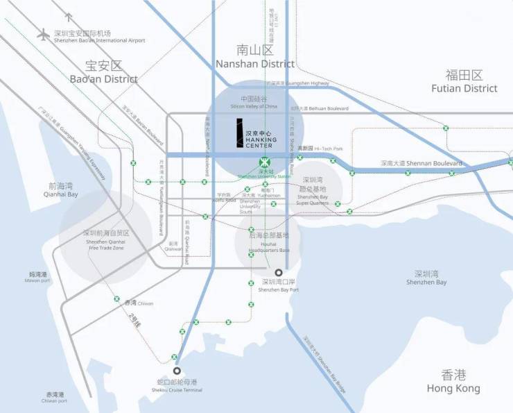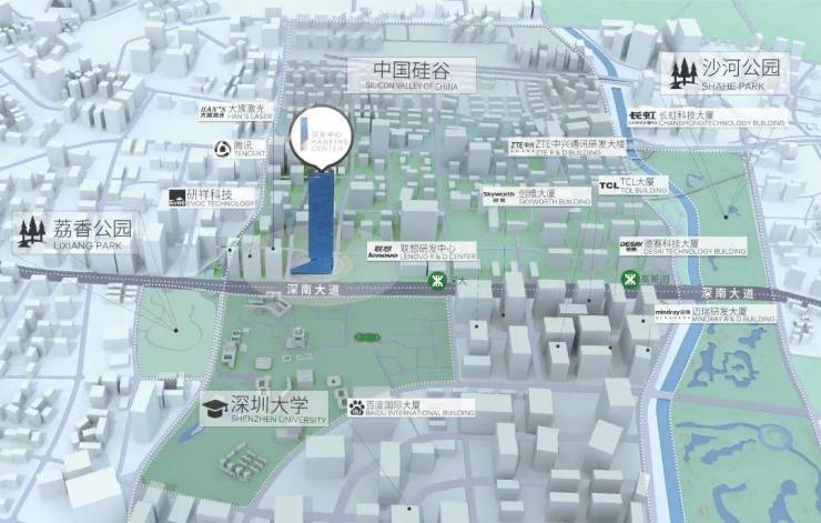 汉京中心傲踞科技园核心,这里有培育了马化腾等诸多知名企业家的深圳大学,聚集了大疆、微众银行等数家独角兽企业,以及百度、腾讯、迈瑞、中兴、TCL、大族、大疆、研祥、创维等众多世界知名IT企业的产研大楼及高新科技企业总部。科技园片区已然是整个深圳兼具成熟性和稳定发展潜力的核心商务区。