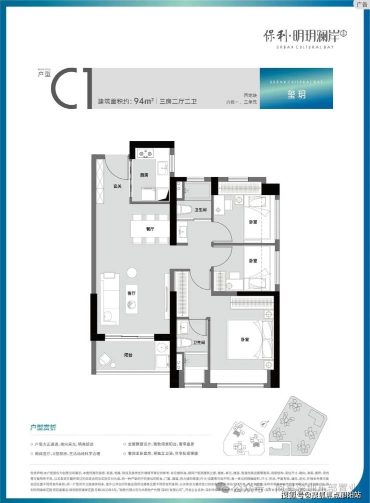 ·方正户型,通透舒居:户型方正,全明采光,科学动静分区;大面宽设计、阔绰景观阳台,将自然盛景融入日常;兼具雅致主卧套房,畅享生活的便捷私密;