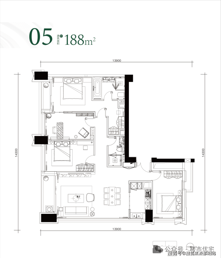 113-153-188-220-222平米,总高127米
