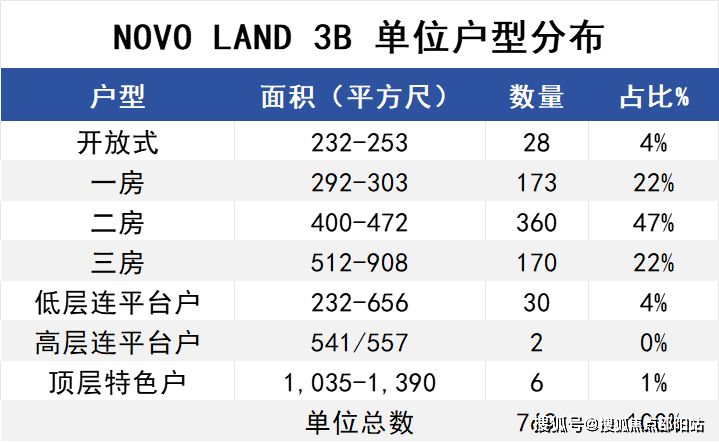 项目的单位实用面积介乎232至1,390尺,间隔涵盖开放式至四房,单位供应以两房户为主,占供应量近五成,分别采用开放式或独立式厨房设计。