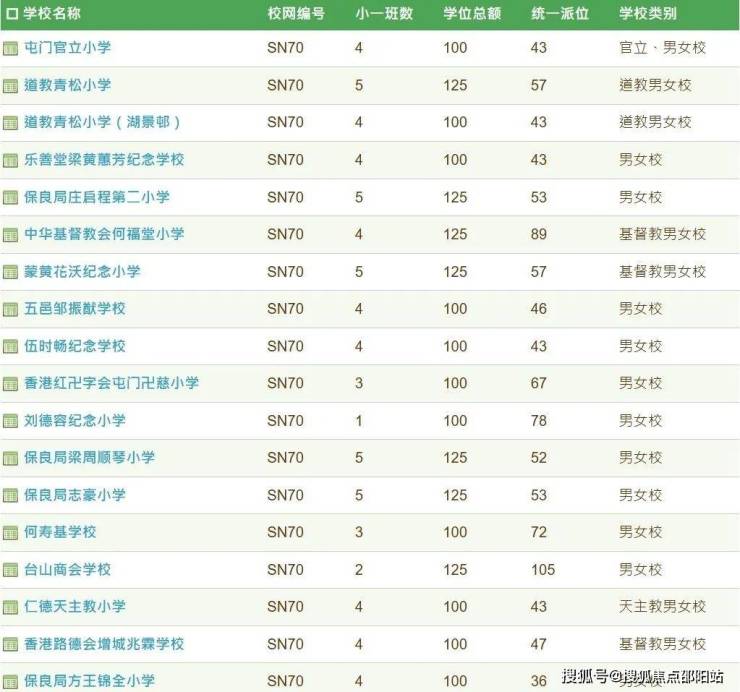 小学为70校网,中学为屯门区。