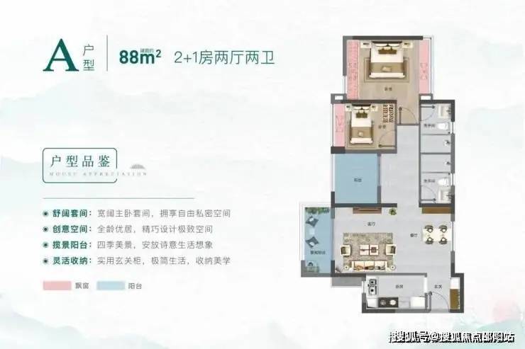 88㎡三房:N+1灵动空间,可改造为书房或儿童房,空间利用率超110%。