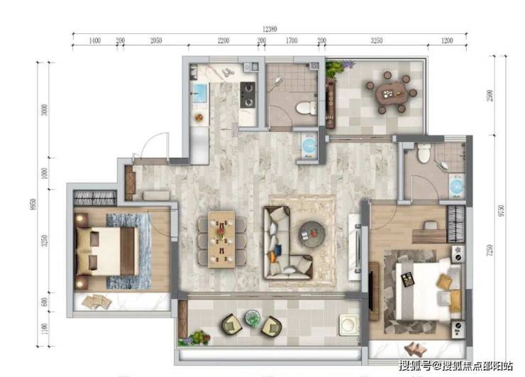 【阔境美宅:三室两厅两卫 建面约103-105㎡】