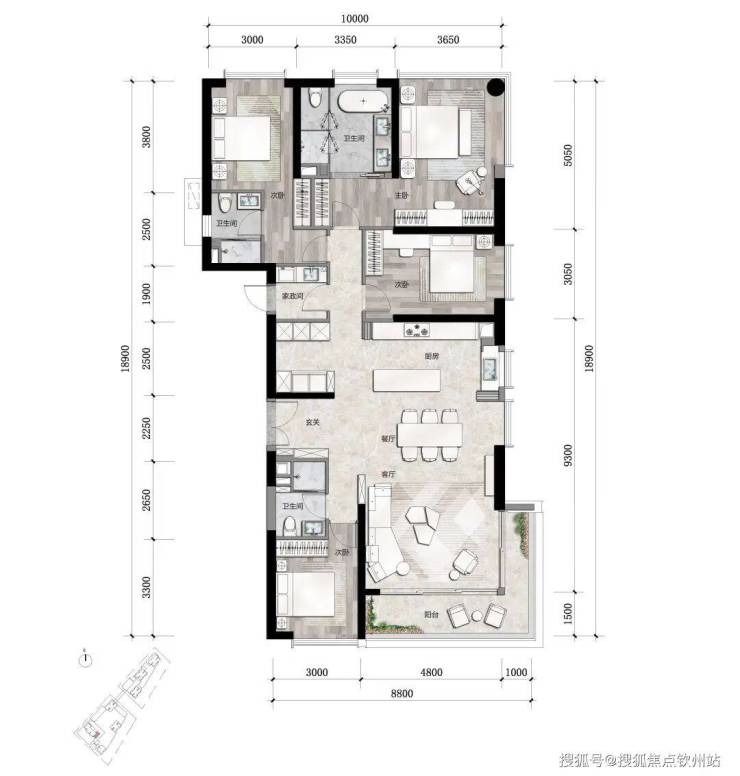 户型A:建筑面积约220㎡(4房2厅3卫)