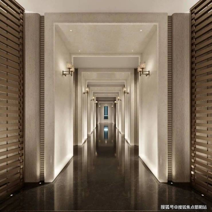 公寓专属归家庭院,重金打造前厅和艺术走廊,设计巧妙融合了现代简约与东方美学,局部墙面用了蓝翡翠,展露现代生活方式的艺术之美,营造归家的仪式感和尊崇感。