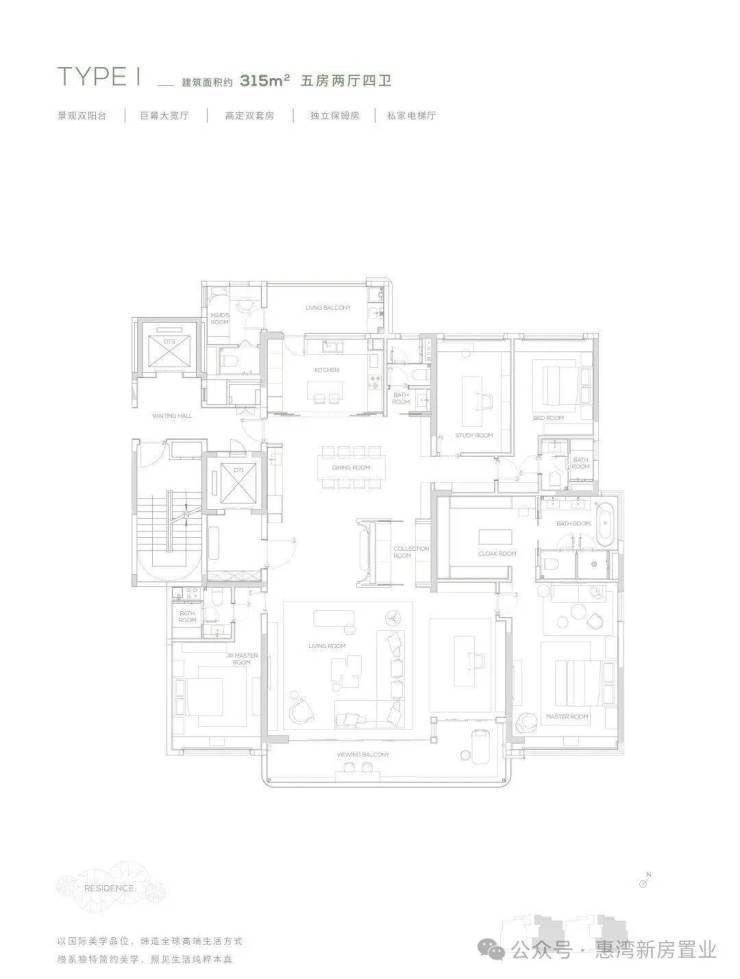 【315㎡户型】 南北双阳台-独立保姆房-巨幕大宽厅-私家电梯厅