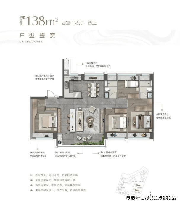 户数与户型:规划总户数870户,户型涵盖建面约95㎡3房、110-115㎡4房、138㎡4房