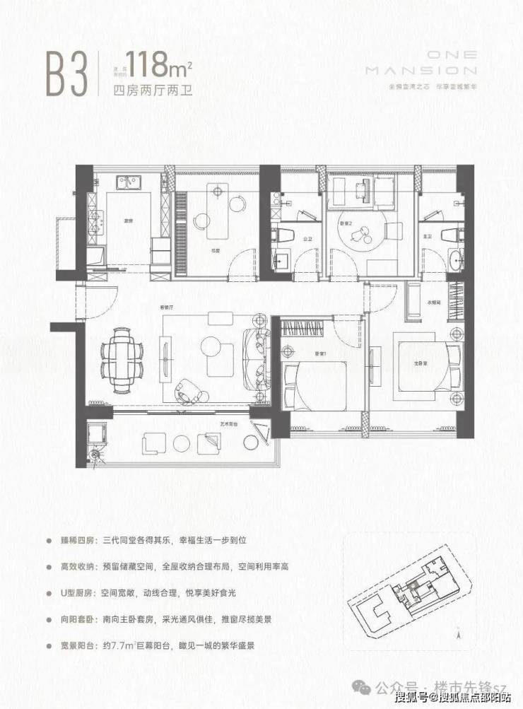 产品面积:建面约86-96-118㎡精筑3-4房