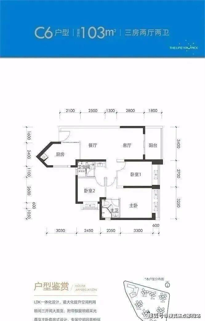 100㎡的3房2厅2卫,折后总价355万,单价3.55万/㎡。