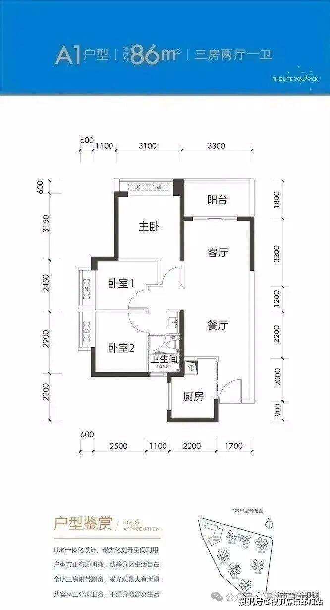 86㎡的3房2厅1卫,折后总价314万,单价3.65万/㎡。