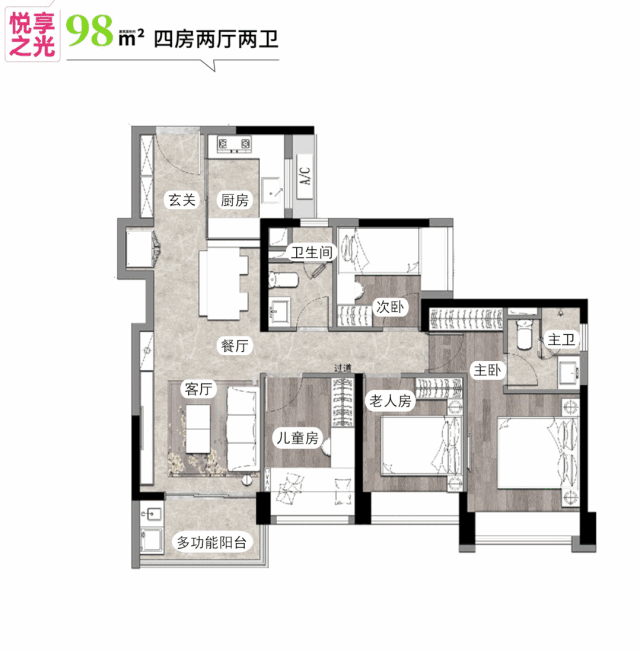 建面约98㎡户型图