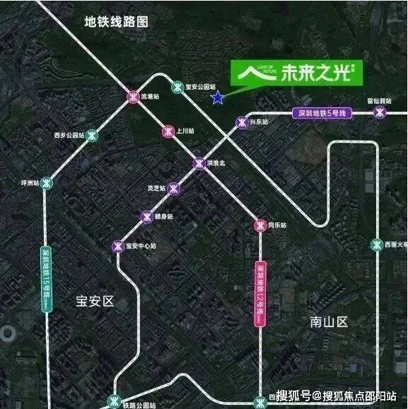 以项目为中心,2公里即可到达宝安中心,4公里到留仙洞、5公里到南山科技园,密布的轨交路网更是进一步将未来之光与各个核心点相连接。