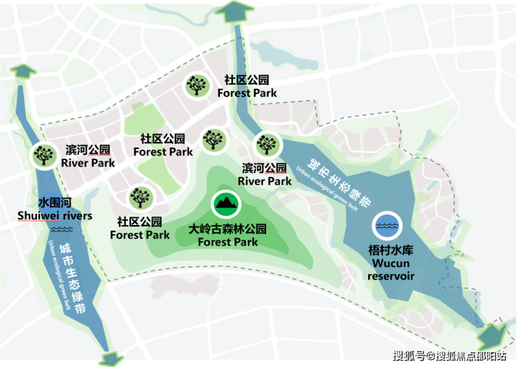 生态配套:沿生态绿带,打造“1+2+3”六大主题公园,家门口即享!