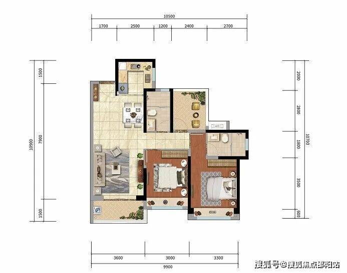 B户型建面约:88㎡ | 3房2厅1卫