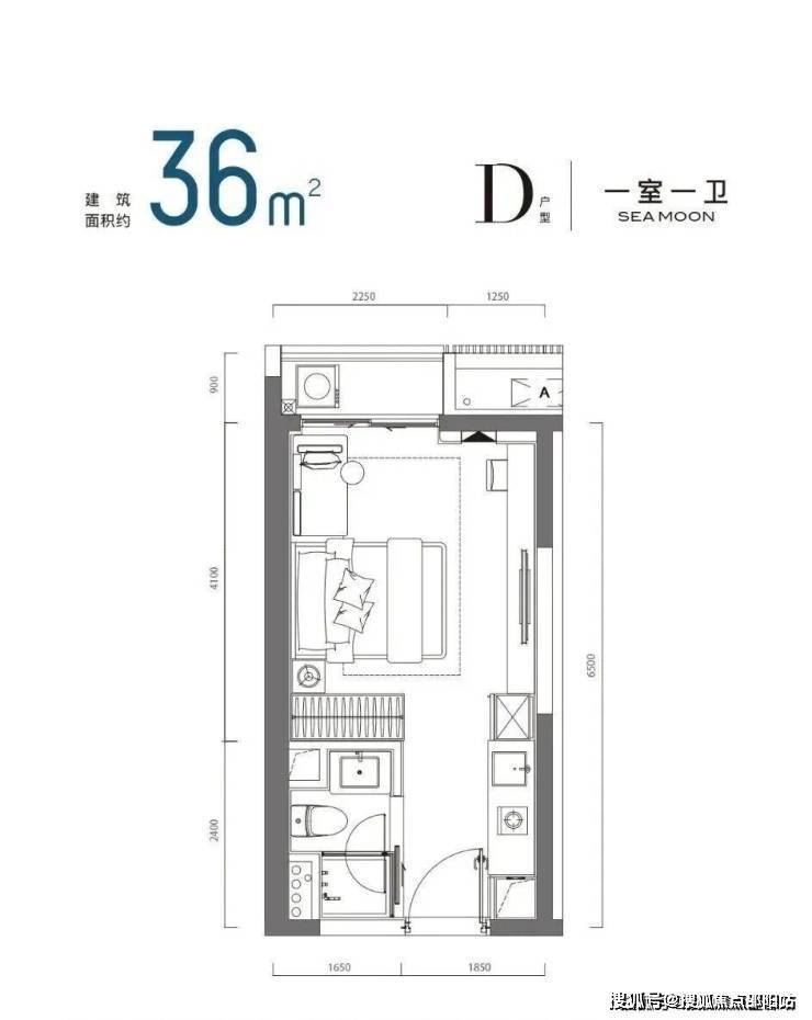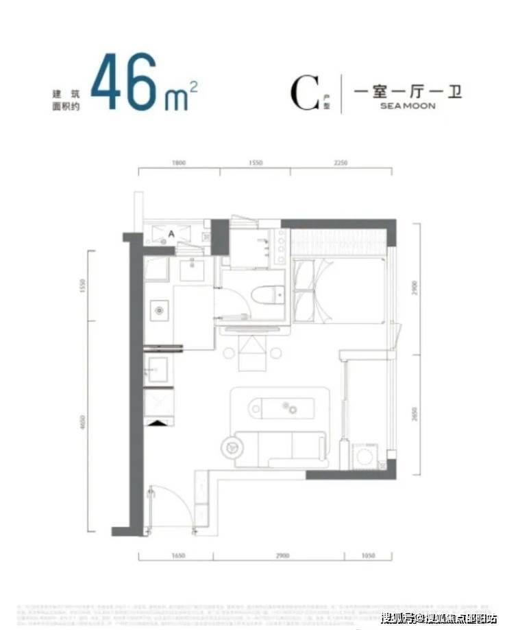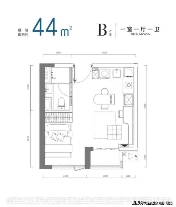 公寓产品面积段:建面约36-60m 1-2房