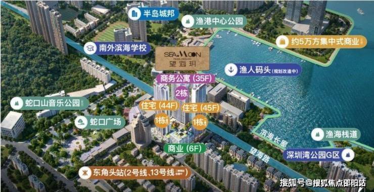 望海玥家园坐落于蛇口醇熟老城区,紧邻半岛城邦、南海玫瑰等高端住区,同享深圳湾一线滨海价值,坐拥稀缺二线海景。虽南侧老旧小区对景观略有遮挡,但项目仍有少量高楼层房源可直望海面,尽揽湾景风光。项目近享蛇口全域顶级滨海配套,步行可达在建深圳歌剧院、渔人码头及滨海长廊,亲海休闲、文化娱乐一站式满足,居住质感与景观价值兼备。