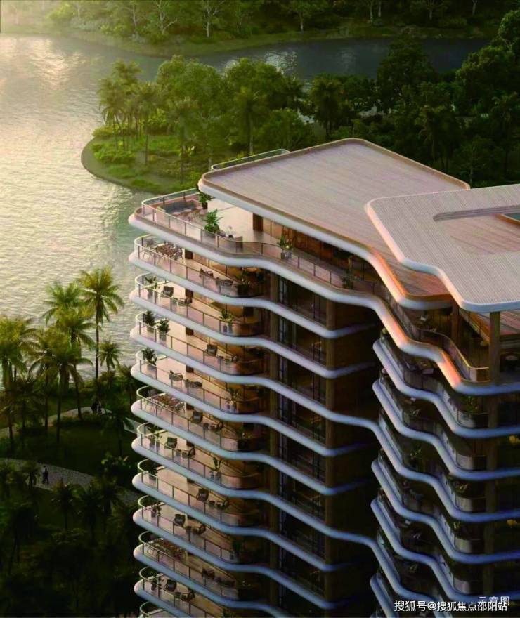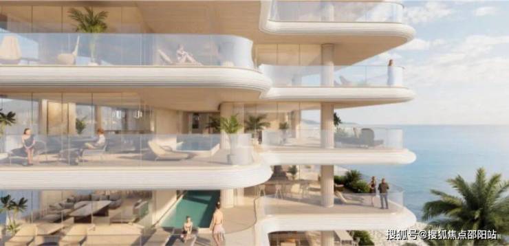 汲取全球滨海奢宅灵感,以现代手法演绎经典:弧形曲线呼应海浪,横向飘板勾勒如海平线般开阔、平稳的观感,营造从容、安宁的“滨海松弛感”。