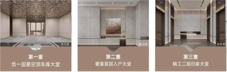 三重星级酒店式奢装大堂营造三重归家礼序,打造更尊贵的生活仪式感。