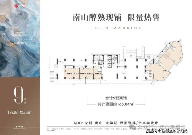 9栋1楼商铺共计5套,约165.04㎡,层高约4.5米