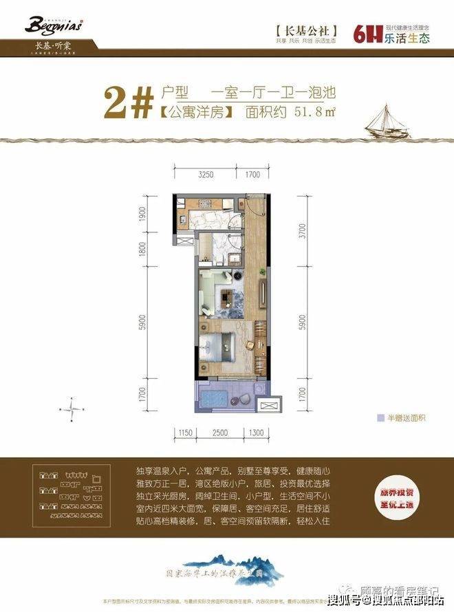 51.8 ㎡ 一房一厅一卫 一泡池