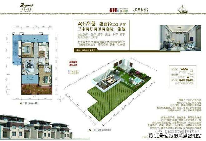 项目由三栋12层度假公寓、82套低层度假住宅、一栋会所及社区综合配套服务组成。