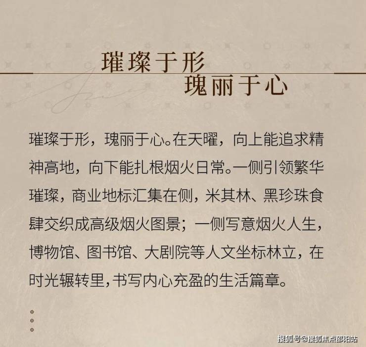 【曜】字义为太阳,光明大盛;【天曜】代表“城市中心、配套一应俱全”的土地禀赋,也象征“事业光明、阅历丰富”的生活状态;保利·天曜是全国首座“天曜”,将打造保利全新天字系标杆。