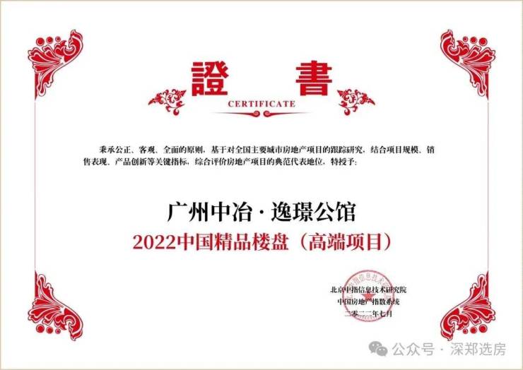 中冶·逸璟公馆从拿地到开发,出生便载誉而来,其所在的地块是当年海珠的楼面最高价,开盘后刷新区域一手豪宅的售价,同时荣膺“2022中国精品楼盘TOP1(高端项目)”。项目仅有48套,并且是广州目前仅有的一手城芯院墅。