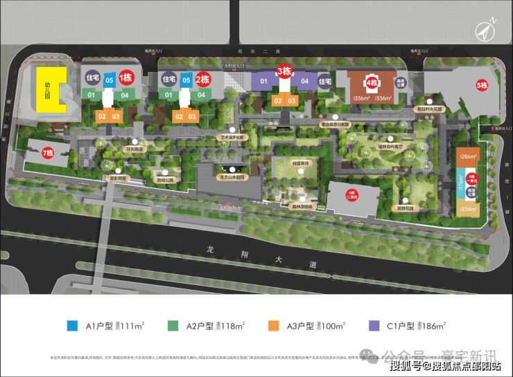 项目户型建面约100 - 186㎡的三房至五房,满足不同家庭结构和人生阶段的居住需求。特意和周边项目紧凑型、过渡型的户型做了区分,保证每一个户型内功能空间尺度都不“将就”。