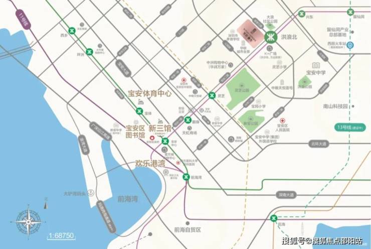 商业配套:与前海共同打造湾区商业中心,沿创业一路、二路,串起欢乐港湾、壹方中心、大悦城、中洲购物中心、万达广场深圳首店等重大城市综合体及商务中心,打造创业路“宝安中央商务带”。