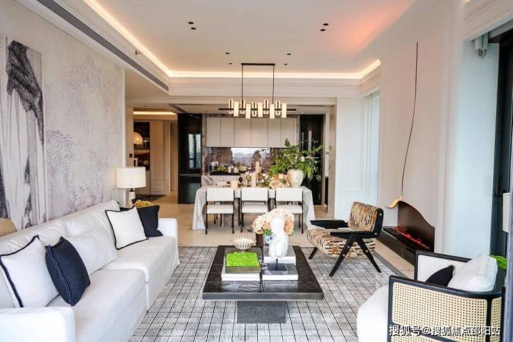 160㎡:展示样板间做了“双龙抱珠”设计,三个卧室中有两个是套间。客厅设计成社交型环绕式沙发,餐厅做了岛台+餐桌结合。如果你经常有朋友聚会或商务接待,这个户型会非常对味。