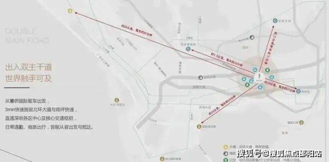 快捷交通路网,北环大道/南坪快速/侨香路/京港澳高速,20-30分钟到福田CBD、深圳北站、皇岗/福田/深圳湾三大口岸、宝安机场等,城芯而居,超享生活。