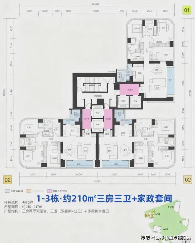 5. 楼层与梯户比:总层高43 - 51F,梯户比有3T1、3T2、5T2、4T3。