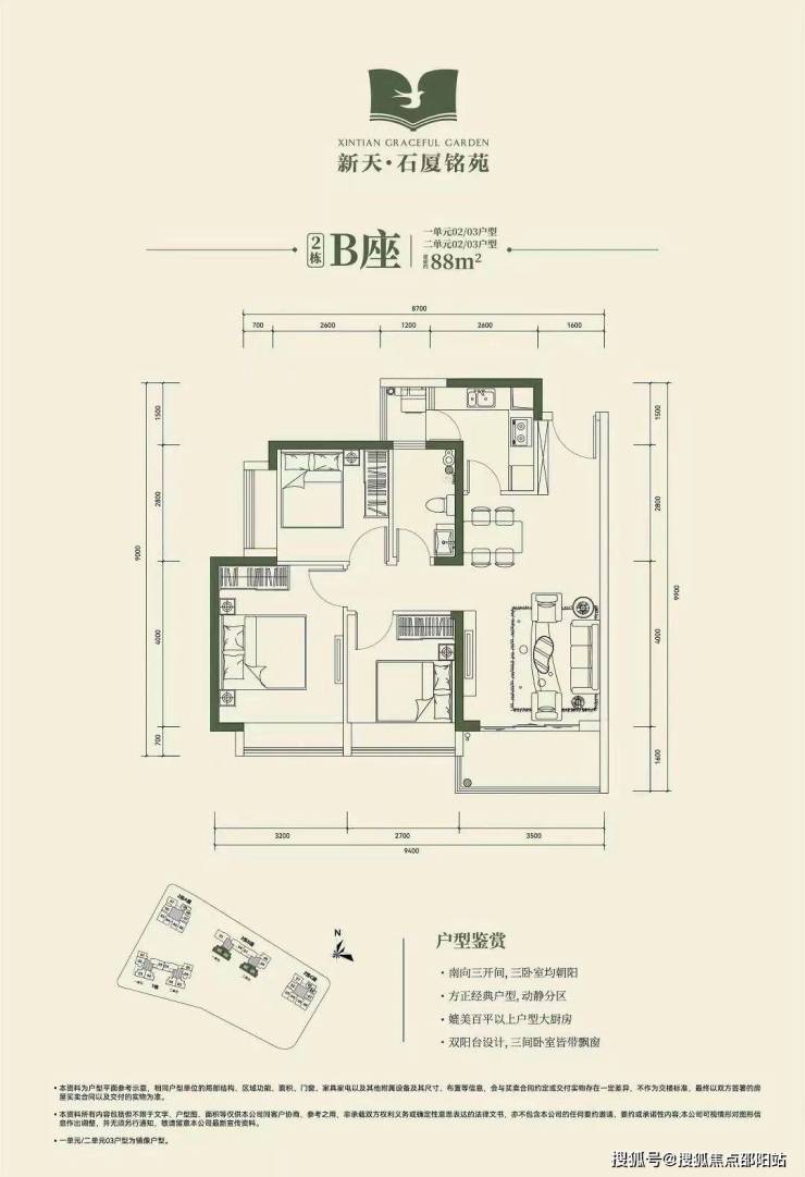 (2)82-88㎡的3房2厅1卫:折后总价669-818万元。