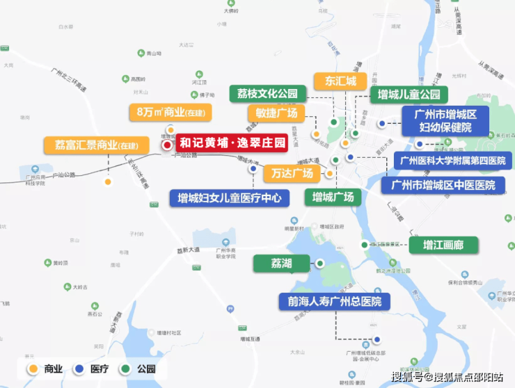 其中,距离项目仅约2公里的约20万㎡荔富汇景商业综合体,以文化旅游、演出娱乐、生态养生为核心,将打造珠三角大湾区周末度假、亲子家庭聚会集合地,预计2024年建成。