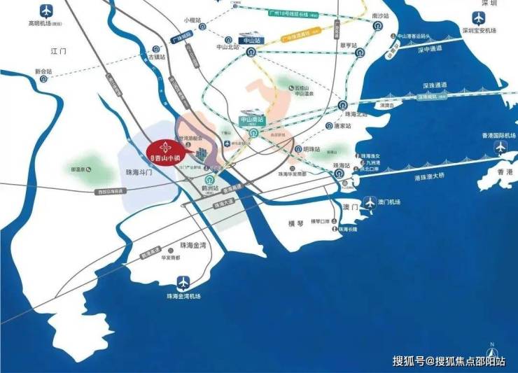 蓝城·鹭岛香山小镇坐落中山第二大岛,距离珠海香洲主城仅35分钟车程,35分钟达珠海金湾机场,25分钟至中山南站、珠海鹤洲站。