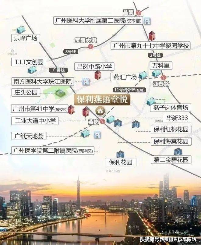 广佛线燕岗站:直线距离约300米,20分钟直达珠江新城(换乘3号线)、15分钟覆盖琶洲(换乘8号线);