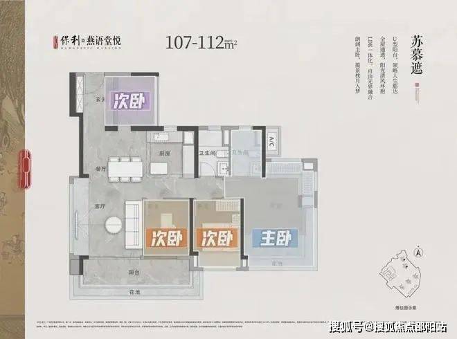107-112㎡三房两卫:东南向设计,采光充足,避开噪音干扰,适合改善型家庭。