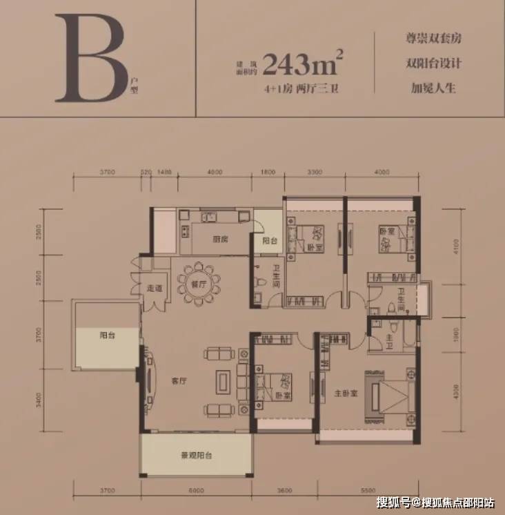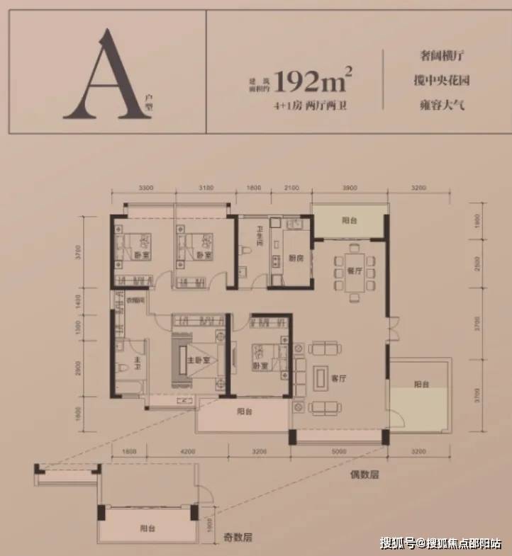 在售户型:A户型192㎡4+1房 、B户型243㎡4+1房、叠墅188㎡、235㎡、634㎡