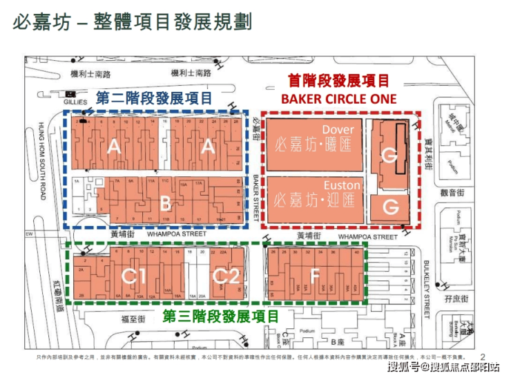 迎汇主要分为西北和东南两个方向,西北方向以內园泳池景和曦汇楼景为主,东南方向则是越过黄埔街后望向未来必嘉坊其他期数楼景。