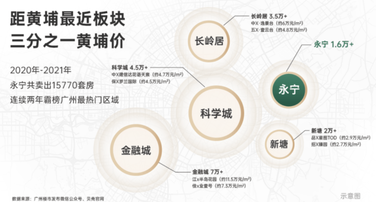 位处广州东进黄金轴线-科学城东板块,毗邻国家千亿级经开区,3大千亿产业集群,世界500强荟萃,集聚10万+高端人才,未来经济发展高地;2020-2022年,永宁连续三年稳居广州新房成交量 TOP1板块,约10公里直达科学城,购房成本立省约200万!