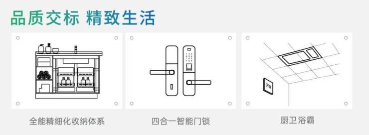 科学收纳设计、四合一智能门锁、卫生间浴霸等高标精装交付,营造更优越的居住体验。