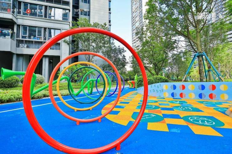 多彩的滑梯、双杠、梅花桩、蹦床等设施,构筑了一座园林游乐场,童趣臻心呵护,任由孩子们游戏笑闹,肆意探索,创造出美好的童年回忆。
