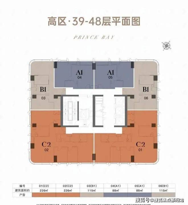 •建筑形态:194米超高层塔楼,共50层,分为低区(9-38层)、高区(39-48层)及顶层(49-50层),梯户比从低区4梯8户到顶层4梯4户逐级优化。