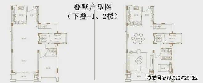 下叠建面相对小一点,约206㎡,空间感不错,配置了两层的地下拓展空间。