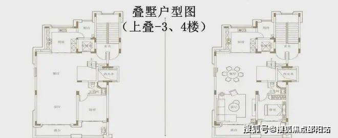 上叠,建面约240㎡,独立入户,首层是独立会客厅和长辈房,二层是三间卧室。